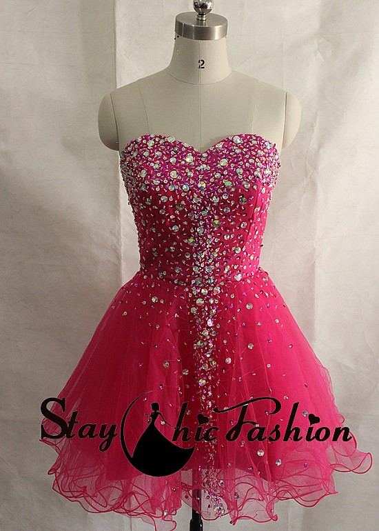 Juniors Hot Pink Rhinestones Beaded Top A Line Ombre Cocktail Dress 2015 na
