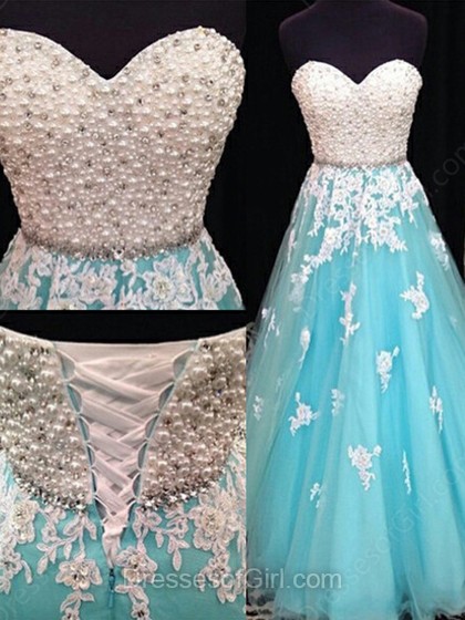 A-line Sweetheart Tulle Floor-length Beading Prom Dresses na