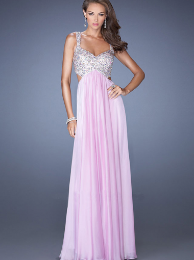 A-line Straps Empire Floor Length Sleeveless Beading Backless Chiffon Prom / Homecoming / Evening Dresses By La Femme 18989 na