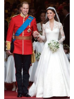 Royal A-line V-Neck Lace Embroidery Satin Wedding Dress na